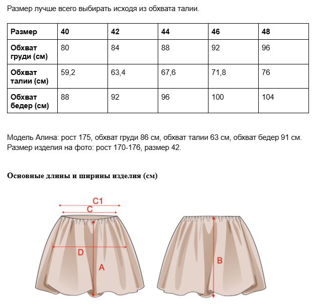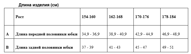 Выкройка юбки-баллон, расширенной к низу, большого объема. Юбка на резинке без пояса, на подкладке из основного материала, все швы закрыты «в чистую». По низу юбки пышная сборка. Длина выше колена.