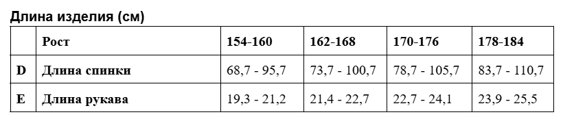 Модель Людмила: рост 173 см, обхват груди 104 см, обхват талии 86 см, обхват бедер 111 см. Размер изделия на фото: рост 170-176, размер 52.