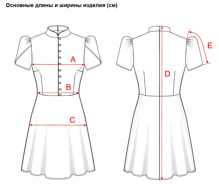 Платье приталенного силуэта, умеренного объема в верхней части с расклешенной юбкой. Прилегание по переду формируется за счет нагрудных и талиевых вытачек. Прилегание по спинке создано за счет талиевых вытачек и молнии в среднем шве спинки. На полочке вертикальная застежка на 10 пуговиц с навесными петлями с планкой под ними. Юбка трапеция. Воротник стойка. Застежка платья на потайную молнию в среднем шве спинки. Рукав большого объема со сборкой и подокатником в верхней части, состоит из 2 деталей с нахлестом. Длина платья выше колена.