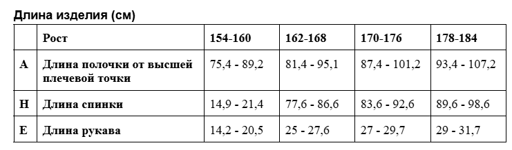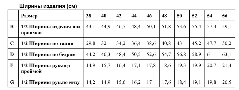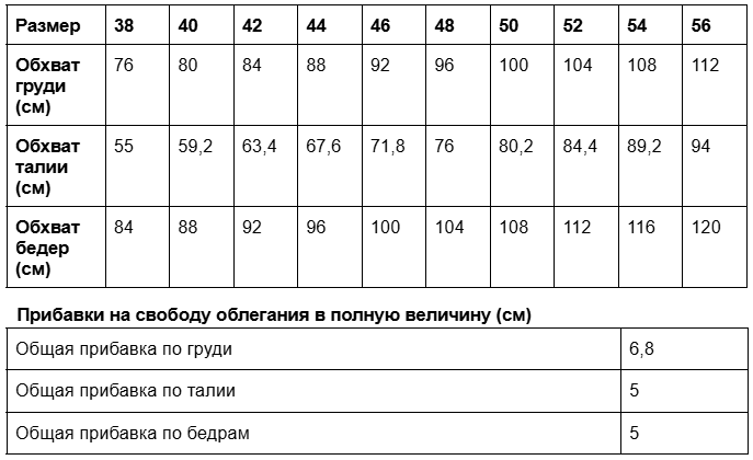 То есть, например, в 40м размере обхват по груди в изделии в полную величину будет равен 86,8 см. Вы можете выбирать размер исходя из своего обхвата груди и желаемой посадки изделия.